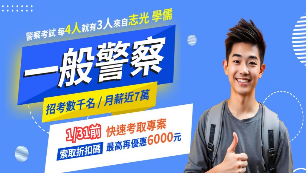 114年一般警察特考原定缺額2,344人,最終錄取1,987人(未達最低錄取分數),警察薪資穩定5萬起,六都警察薪資最高達7.7萬,半年衝刺115上榜,警察補習最推薦「桃園志光補習班」,助您成功上榜!