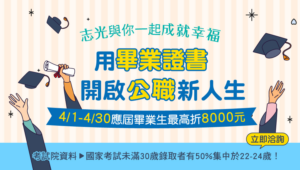 【大學生考公職】專屬優惠8000元!在學即起步,考公職更有勝算