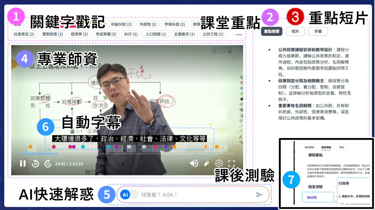 在補習班個人電腦座位,觀看線上課程,輔導期間無限看課,兼顧專注與便利的學習模式。 |