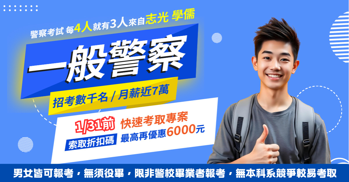 憑【114年一般警察二試錄取成績單】報名正規全套課程,享5折優惠