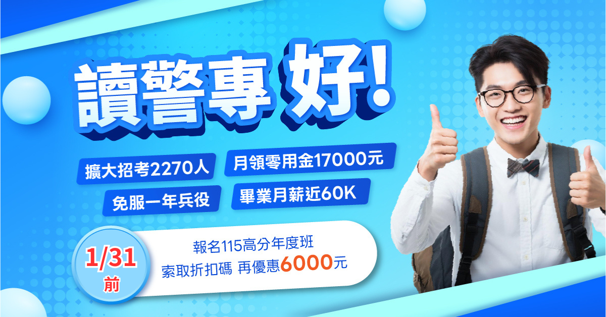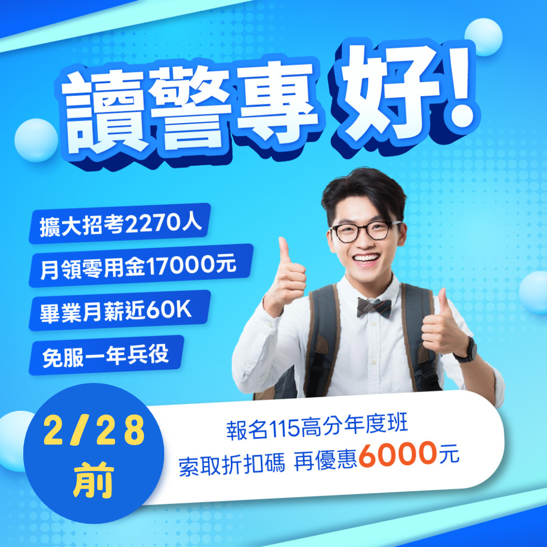 憑【本系列舊生/金卡/學生證/警眷證明(擇一使用)】報名115警專衝刺班全套現折 2,000元