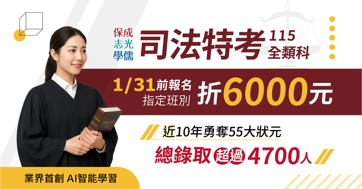 1/31前憑【在校生學生證】報名「律師司法官」,享66折優惠