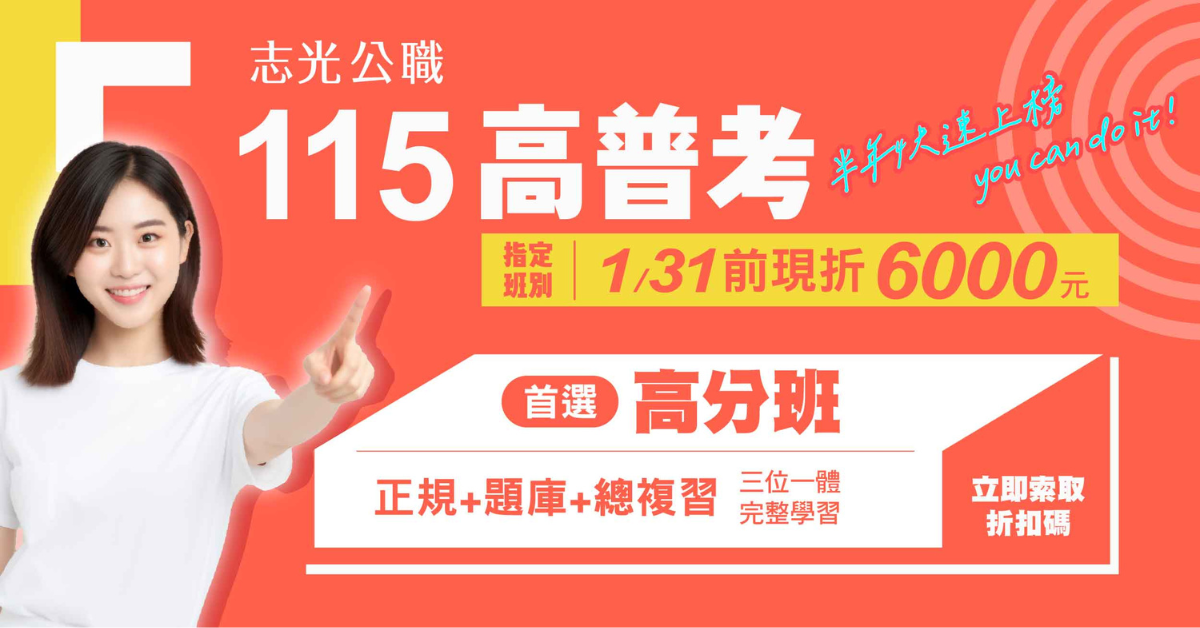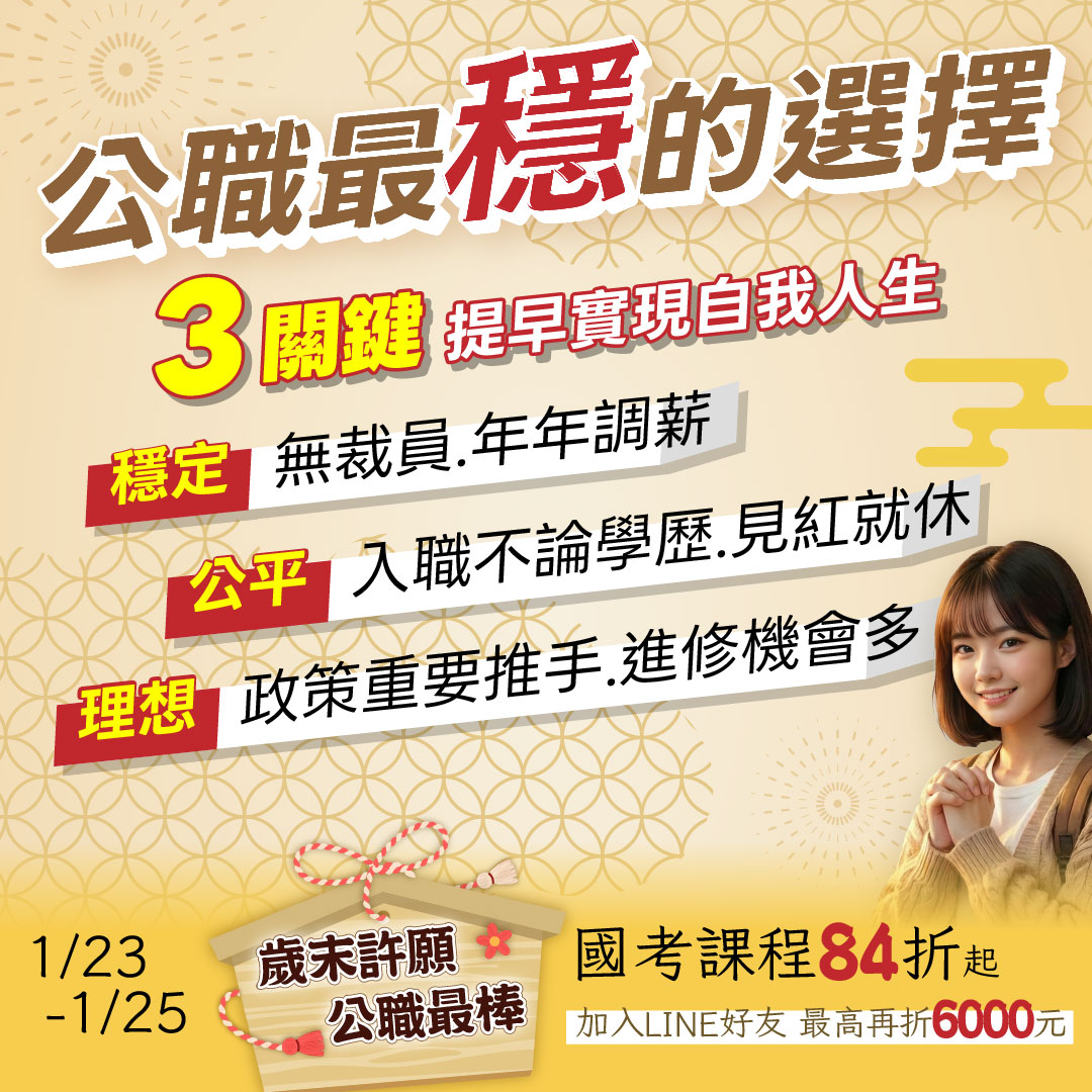 | 1/1~25憑【115初等考准考證】報名正規全套課程,再折3,000元。 |