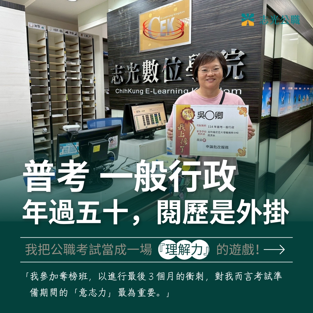 2026順順順!竹南志光陪您上榜!歲末搶先備戰全新起跑!116新班開課,考上高考年收77萬,勝過7成上班族!熱門課程最低66折起,還有6,000元學費折扣碼,滿額享分期0利率,全國首創AI智能字幕學習系統,加值服務最優質!考生一致好評、上榜率再升級!提供竹南、頭份、造橋、後龍、崎頂……等苗栗地區現場課程諮詢、試聽與專屬報名優惠,三效學習讓在地考生學習最便利。