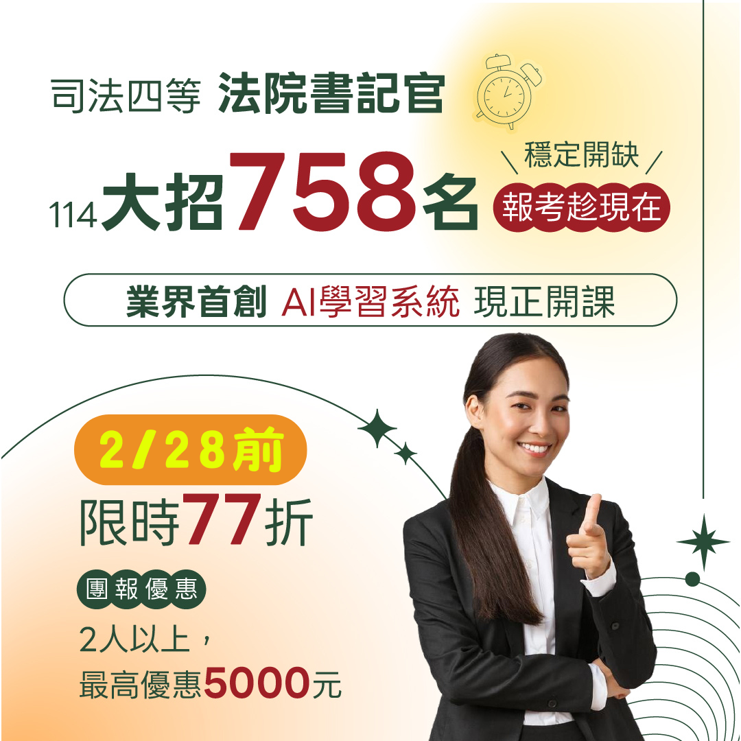 憑本人【憑當年度或前一、前二年度考取成績單】報名全套課程,享77折優惠(限本系列考取生)