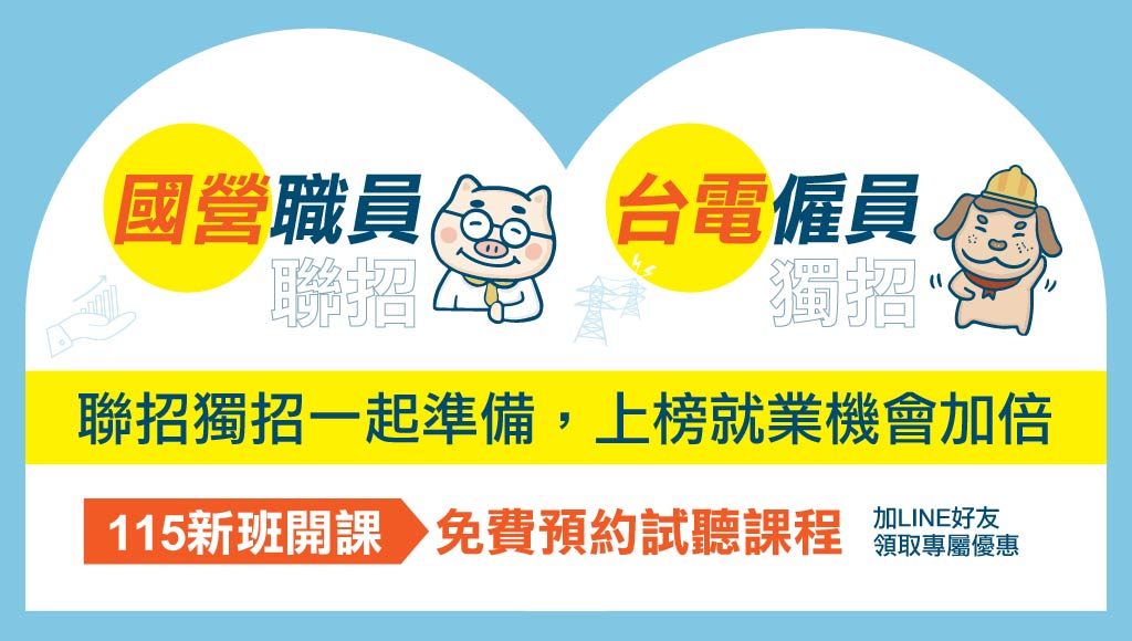 國營聯招又來了!台電、中油、台水、台糖同步招考,115年聯合招考開放多類科,起薪上看4.5萬、年終最高4.4個月!文科、理工、會計都有名額,科目怎麼準備?哪組錄取率高?看完這篇,3分鐘掌握報考優勢+志光課程優惠,穩上榜不是夢!