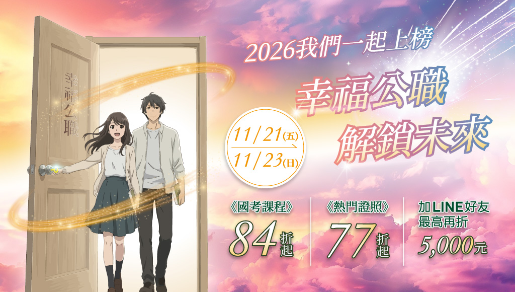 【限時優惠】11/21(五)~11/23(日)幸福公職解鎖未來 限定類科77折 團報最高再折5000元
