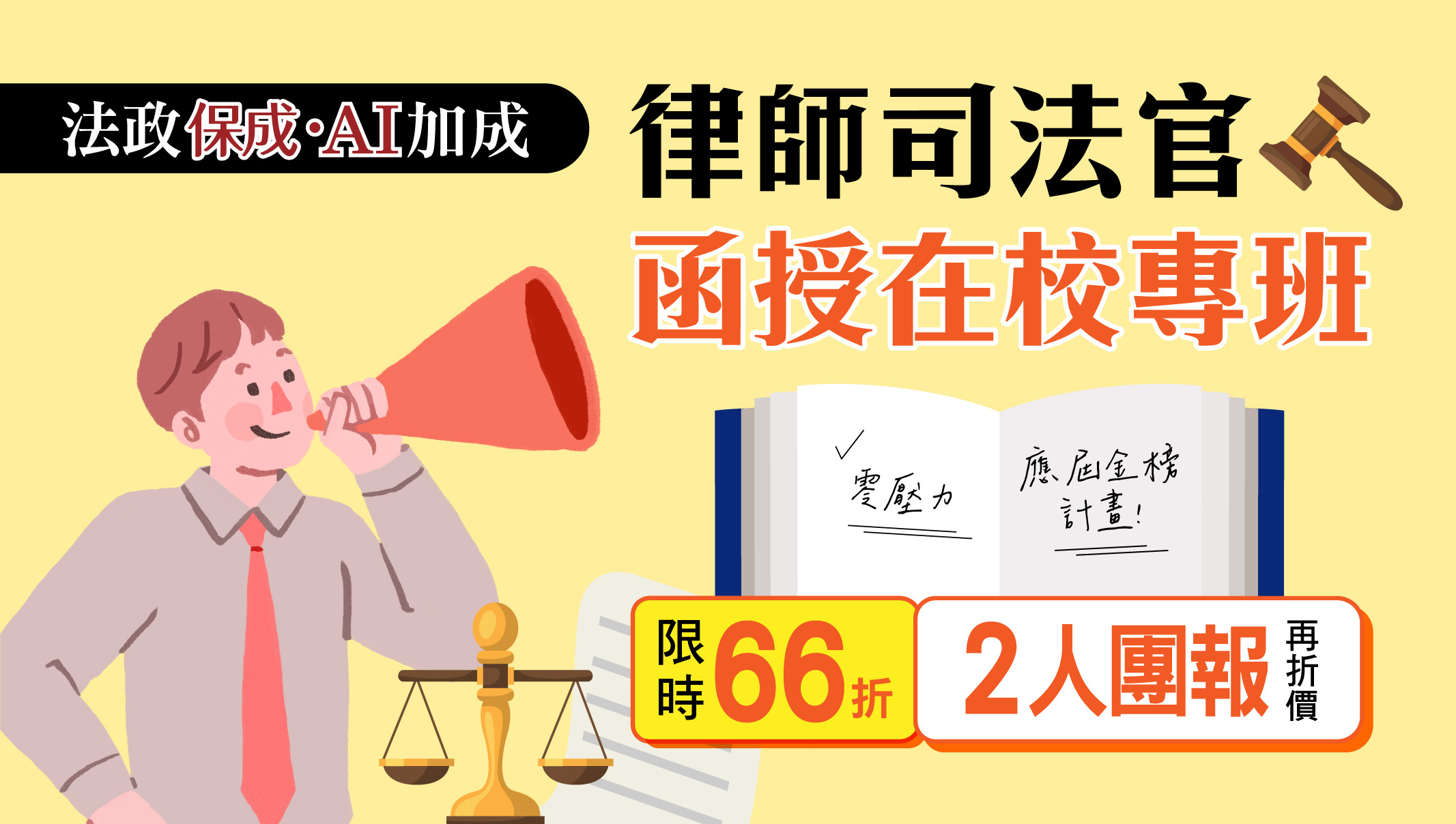 【律師司法官】115函授校園專班 金榜專案66折 團報最高再折5000元