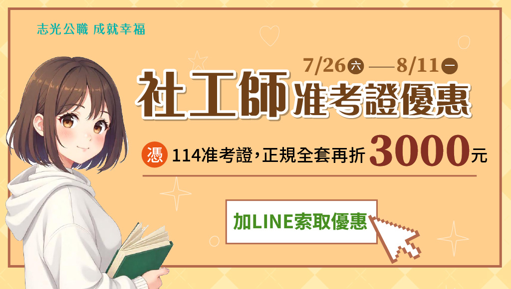 另享專屬優惠(詳情門市人員)成為幸福推手社工師+公職一次準備