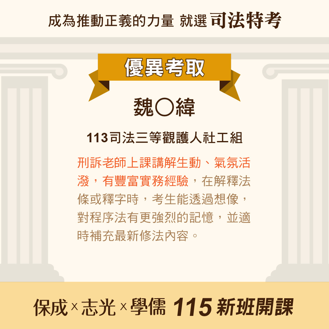 (5)憑【114司法/調查局/海巡特考-一試成績單】報名正規全套課程,再折3000元 | ||
