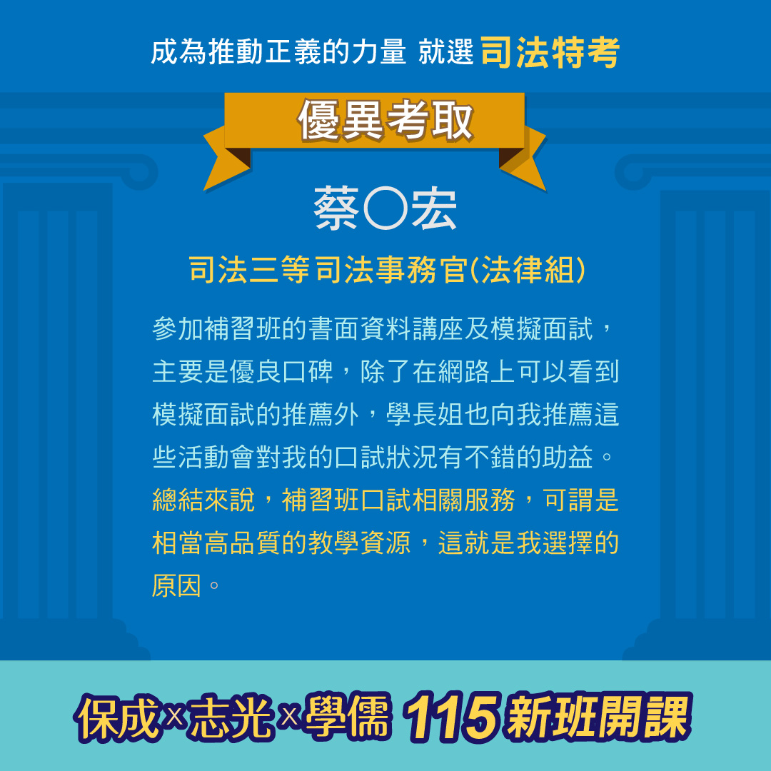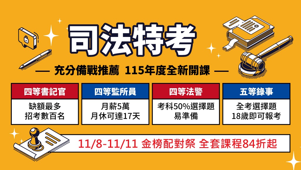 【司法特考】開啟鐵飯碗人生|115年新班熱烈招生中! 非法律系也可考