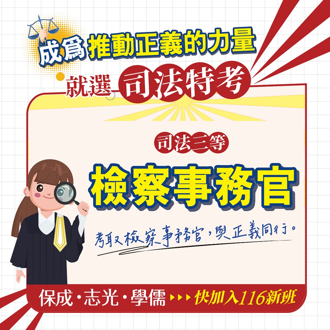 | 司法特考簡章 | 完整輔考服務 | 歷屆試題下載 | 優秀錄取榜單 |
