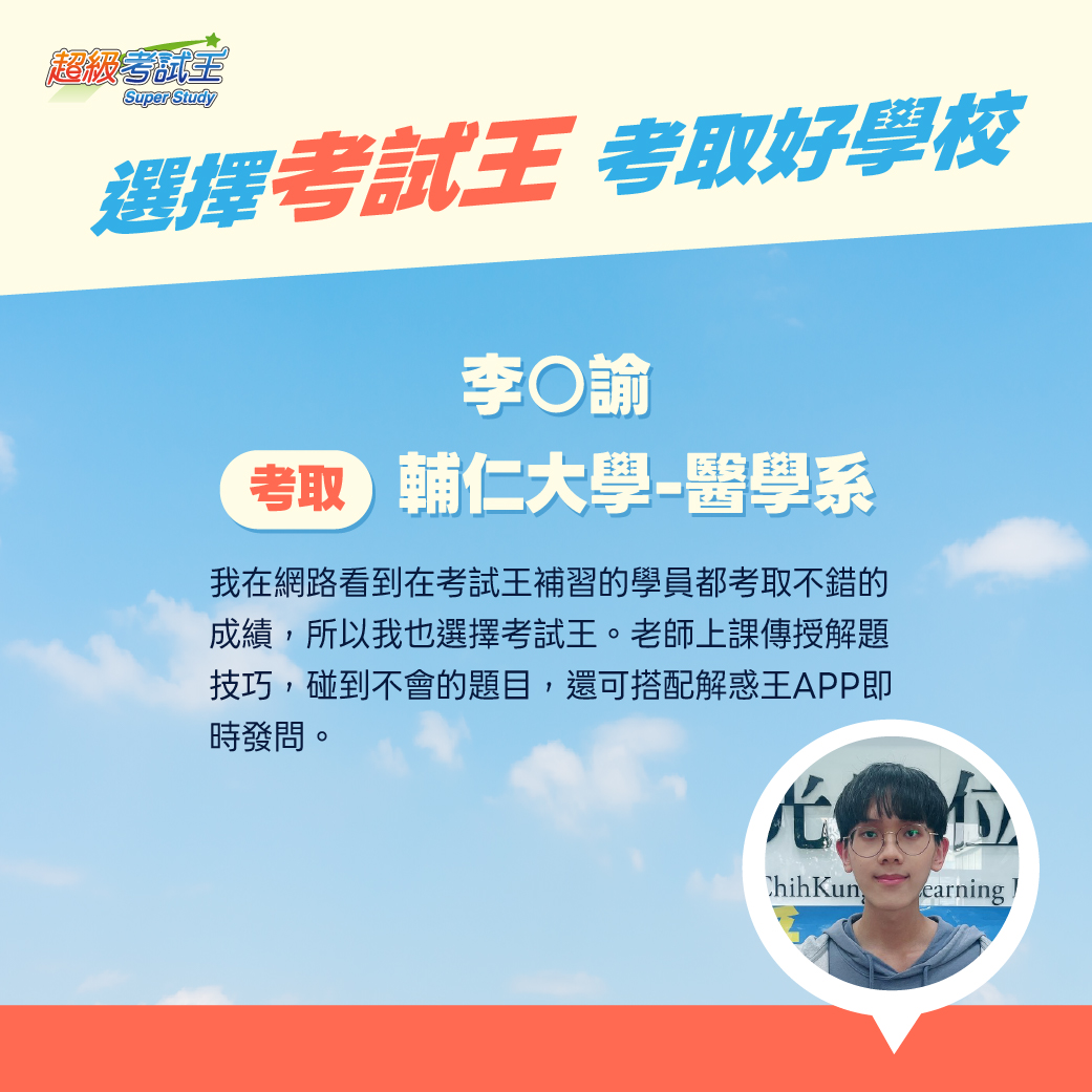 超級考試王全國最大連鎖升學補習班,首創「到點」加「雲端」雙效學習,各科名師課程隨選隨看,歡迎來班免費試讀。速洽西屯逢甲志光數位學院