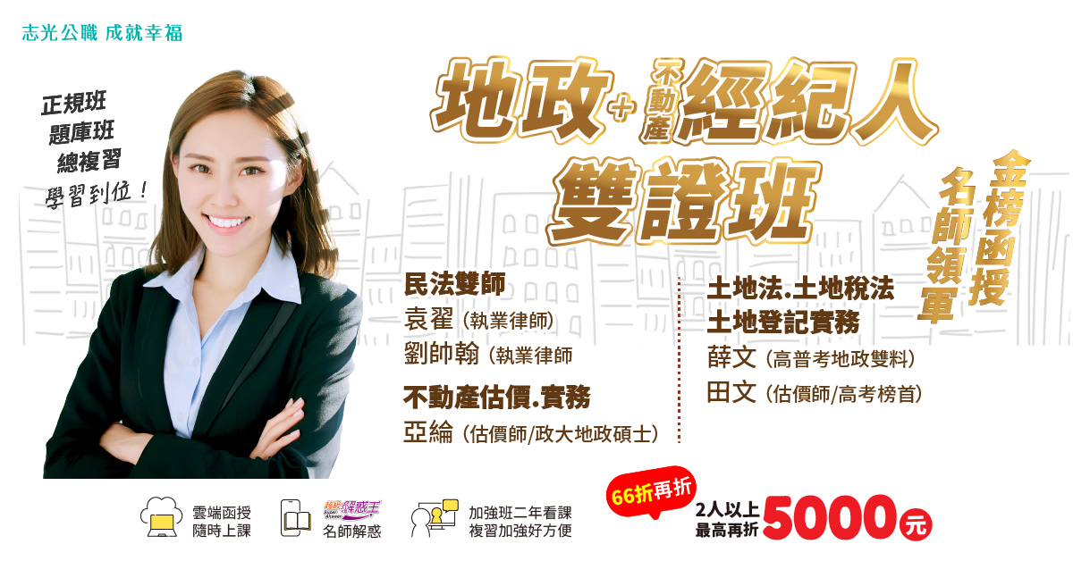 (地政士×不動產經紀人)完整正規班+題庫加值課+總複習
