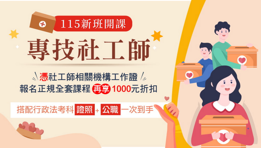 加值『社會工作直接服務』基礎課成為幸福推手社工師+公職一次準備