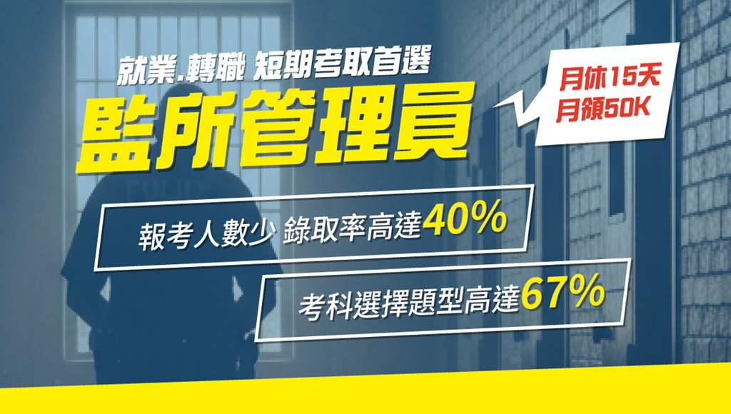 | 四等 | 年滿18歲,監所管理員/法警需在45歲以下,高中職以上畢業。 |