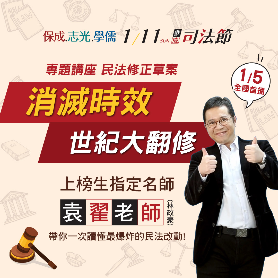 【司法特考】1/1~11司法節全套84折起,門市報名再折2000元