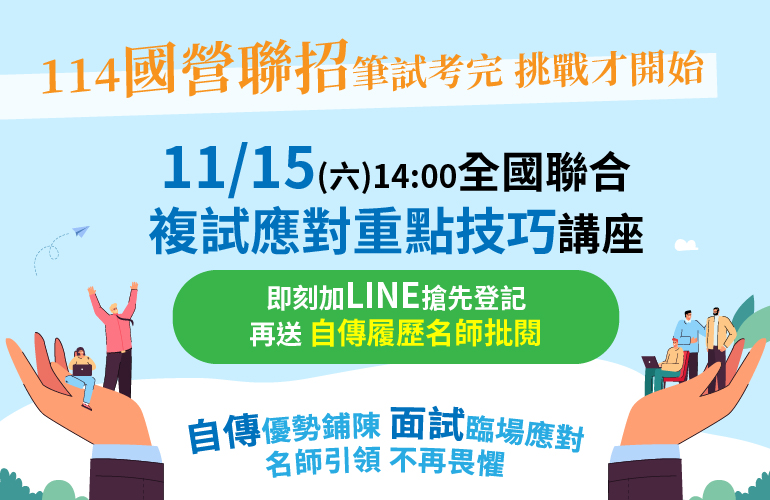 【國營聯招】立即預約考後複試講座+名師自傳批改服務