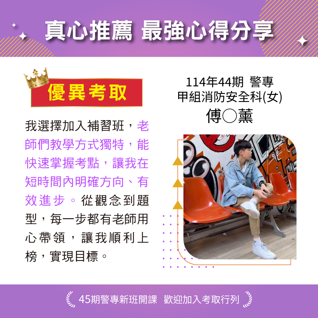 115年-警專-甲乙組-衝刺班-全新開課 |