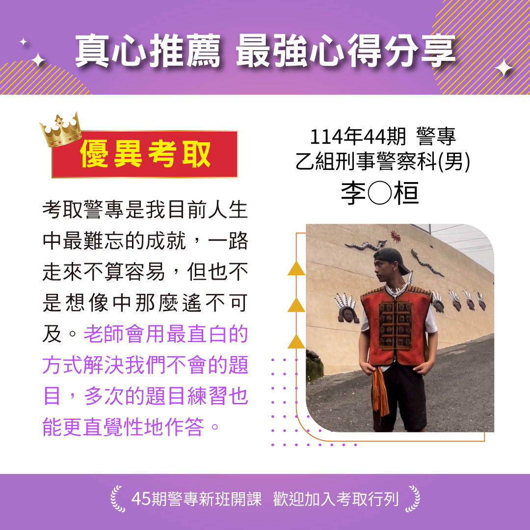 【警專】警察專科新班開課|115 衝刺奪分 × 116 基礎班