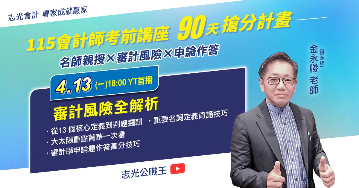李〇瑞會計師最推薦審計學的金永勝(靖永彬)老師,老師的教學方式真的與眾不同,重點是有效!。