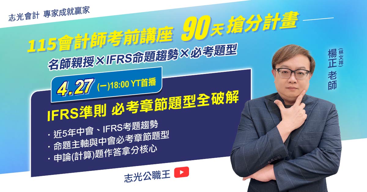 IFRS準則 必考章節題型全破解4/27(一)18:00首播 |