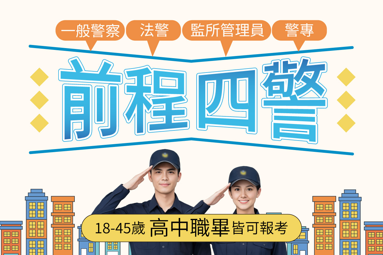 #一般警察四等 #一般警察三等 #高考(三級) #普考 #司法特考-四等 #國營事業聯招新進人員 #台電新進僱員 #司法特考-三等 #司法特考-五等 #專技高考 #專技普考 #初等考 #地方政府特考-三等 #地方政府特考-四等 #關務特考-三等 #關務特考-四等 #公務人員升官等考薦任 #警察特考三等 #警專 #警察特考-四等 #中華電信工務類 #郵局專業職(二) #台菸酒招考專業職