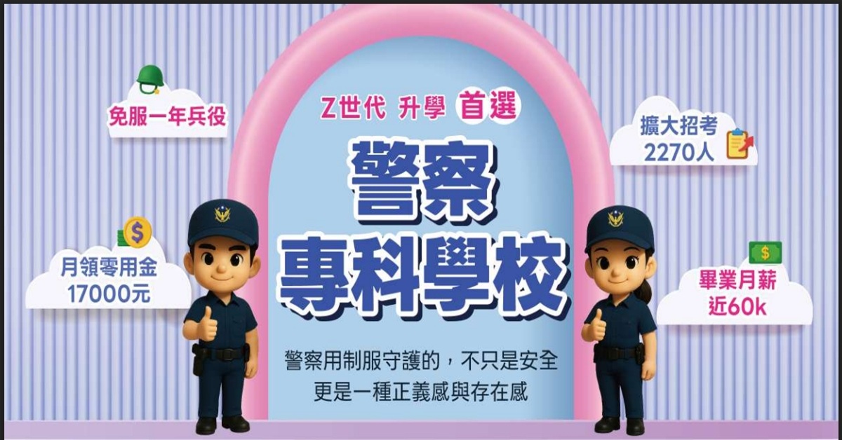 2.高中生走外軌制:一般高中/高職→畢業後報考一般警察特考,錄取後成為警察。 |
