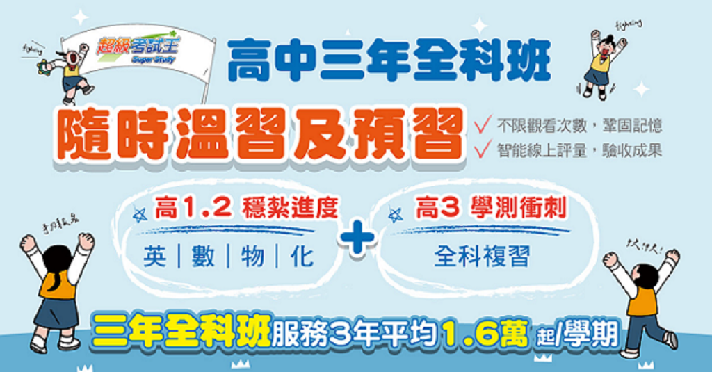 【高中英數物化】三年全科班新班開課,完整課程不受插班影響