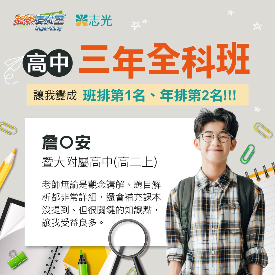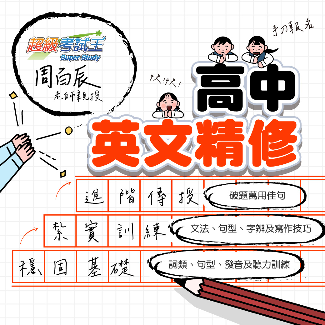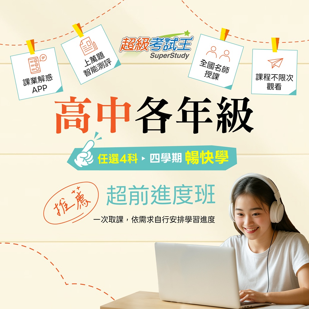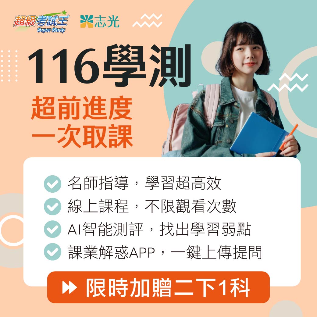 | 【升學課程】「學測(不含衝刺班)、高中三年全科班、英文/數學精修班 全修課程」,憑折扣碼折500元。 |