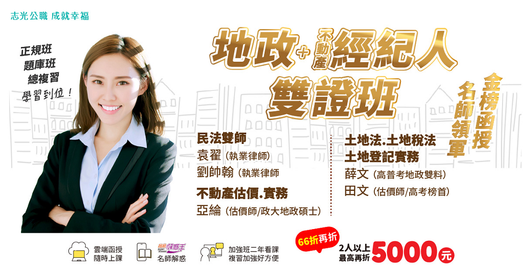 (地政士×不動產經紀人)完整正規班+題庫加值課+總複習
