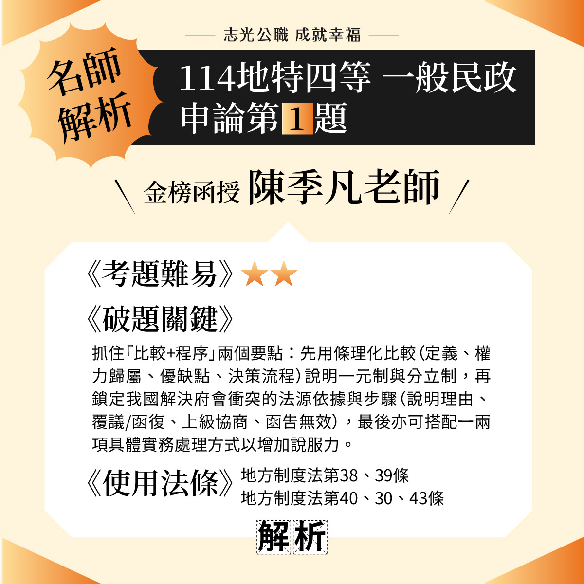 114地方特考三等-考題命中 |
