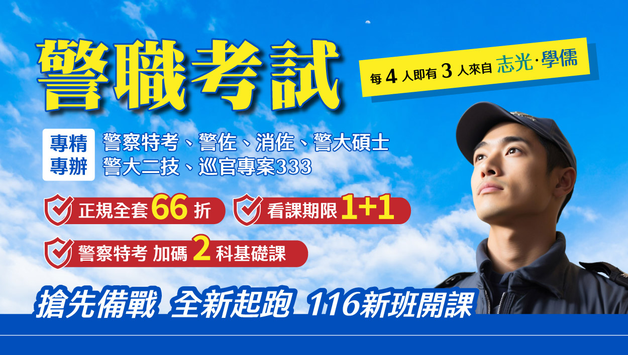 【警察特考】3/10警察特考開始報名|116新班開課再加碼2科基礎課|預約試聽中