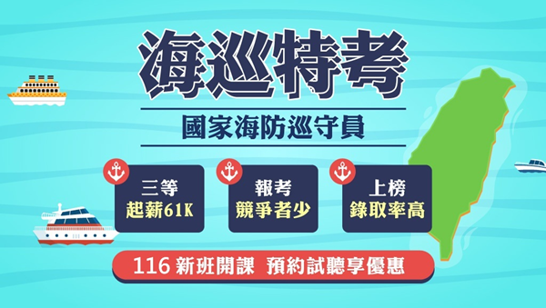 【海巡特考】115新班開課│競爭少上榜率高|預約試聽中