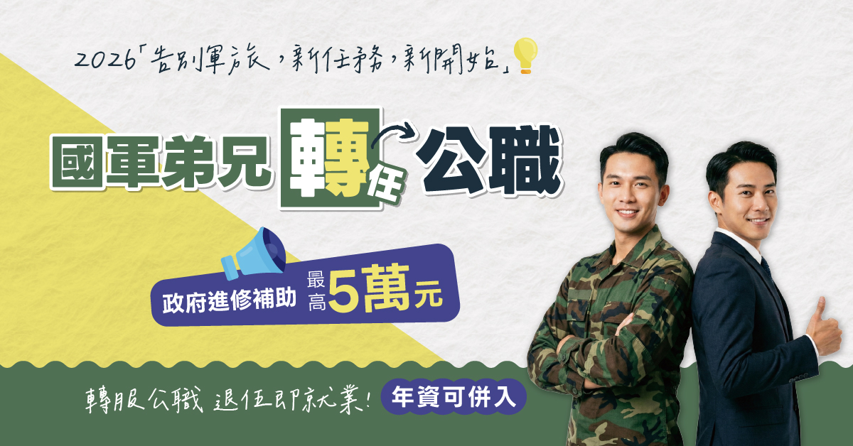 【國軍專案】國軍弟兄,轉任公職!!可享政府最高補助五萬元
