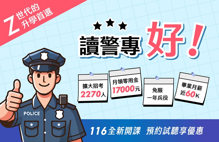 警專招生為獨立考試,警大的考試則採計「學測」成績,不另加考筆試。