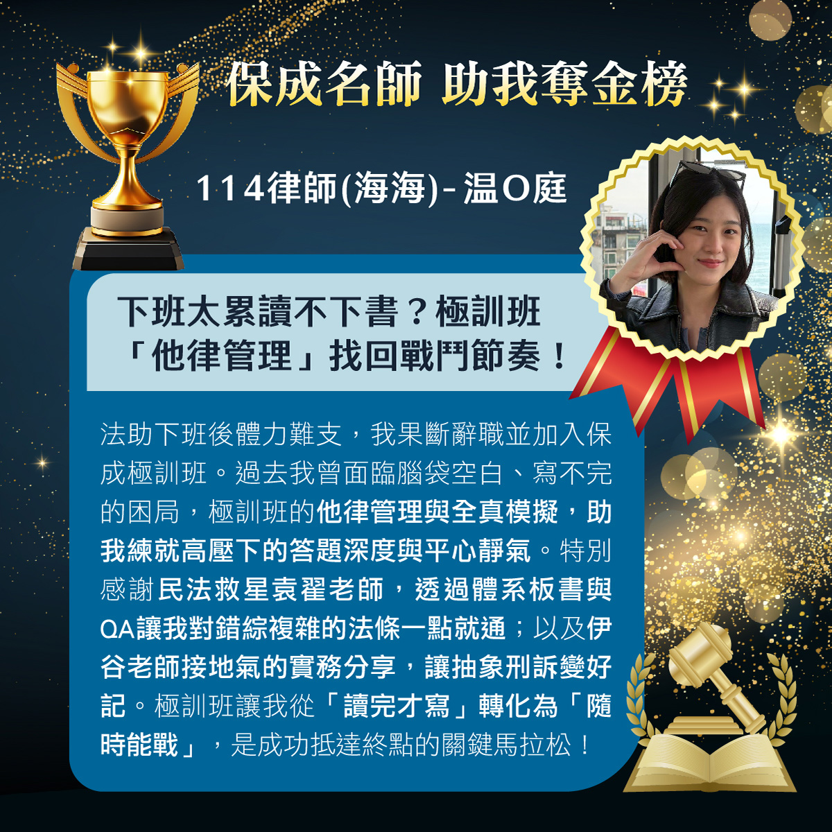 | 115/1/31前,『台大/政大/北大/東吳/中正/成大-法律系』、『輔大/中興/東海/高大-法律系所』在校生報名再折$2000 |