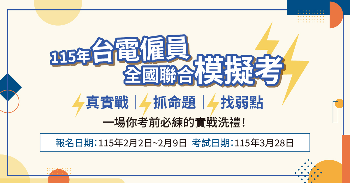 【轉職快報】115台電僱員簡章公告|115台電僱員全國模擬考2/2 – 2/9報名