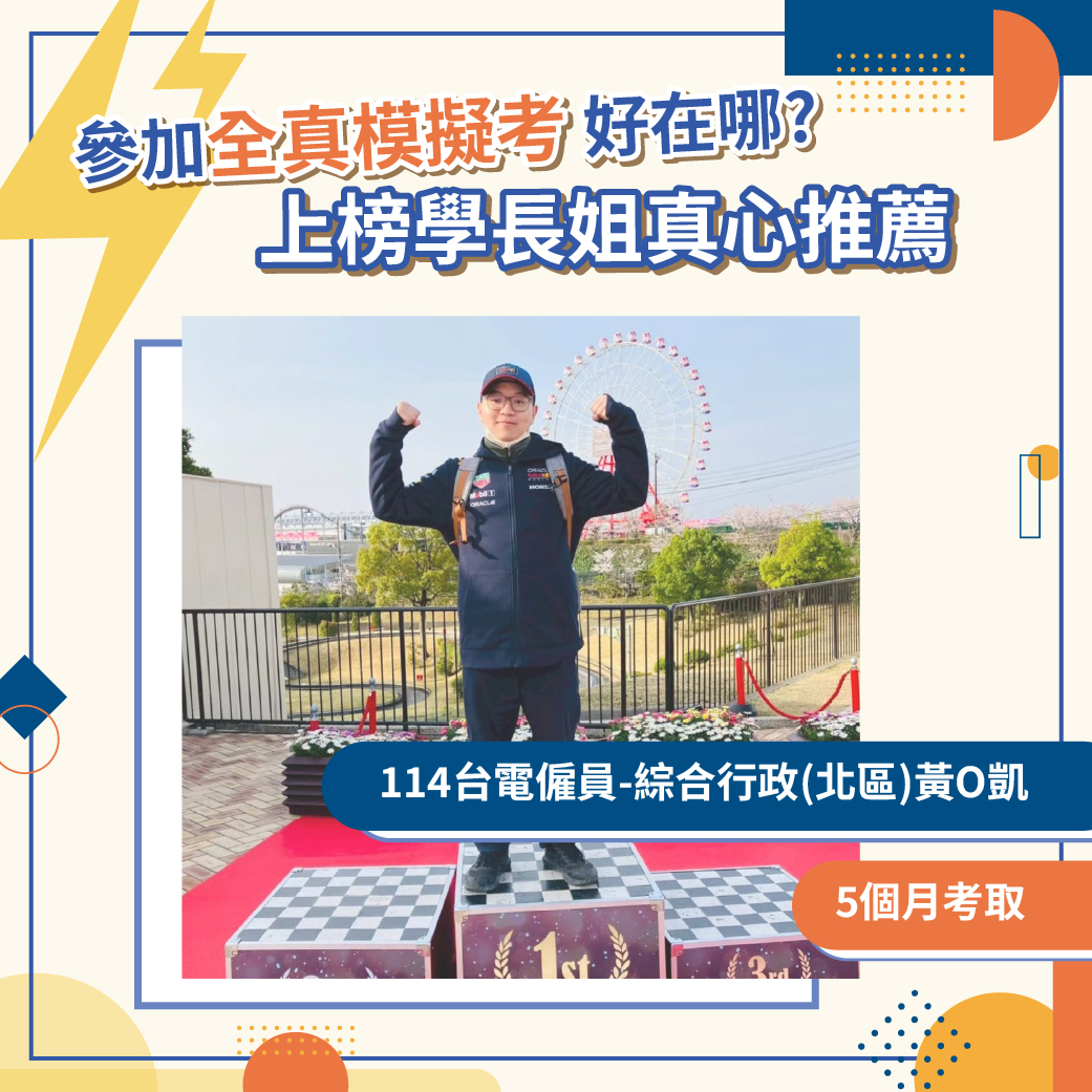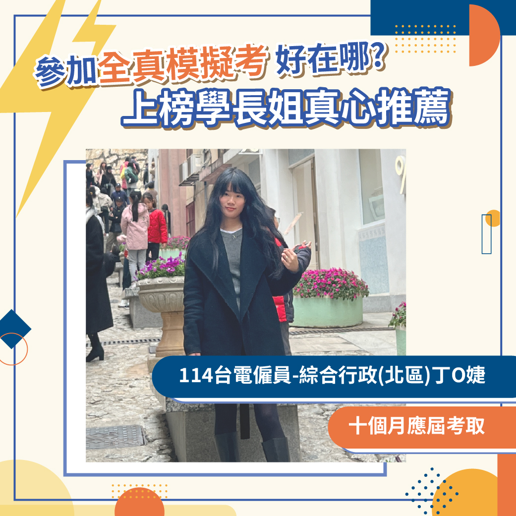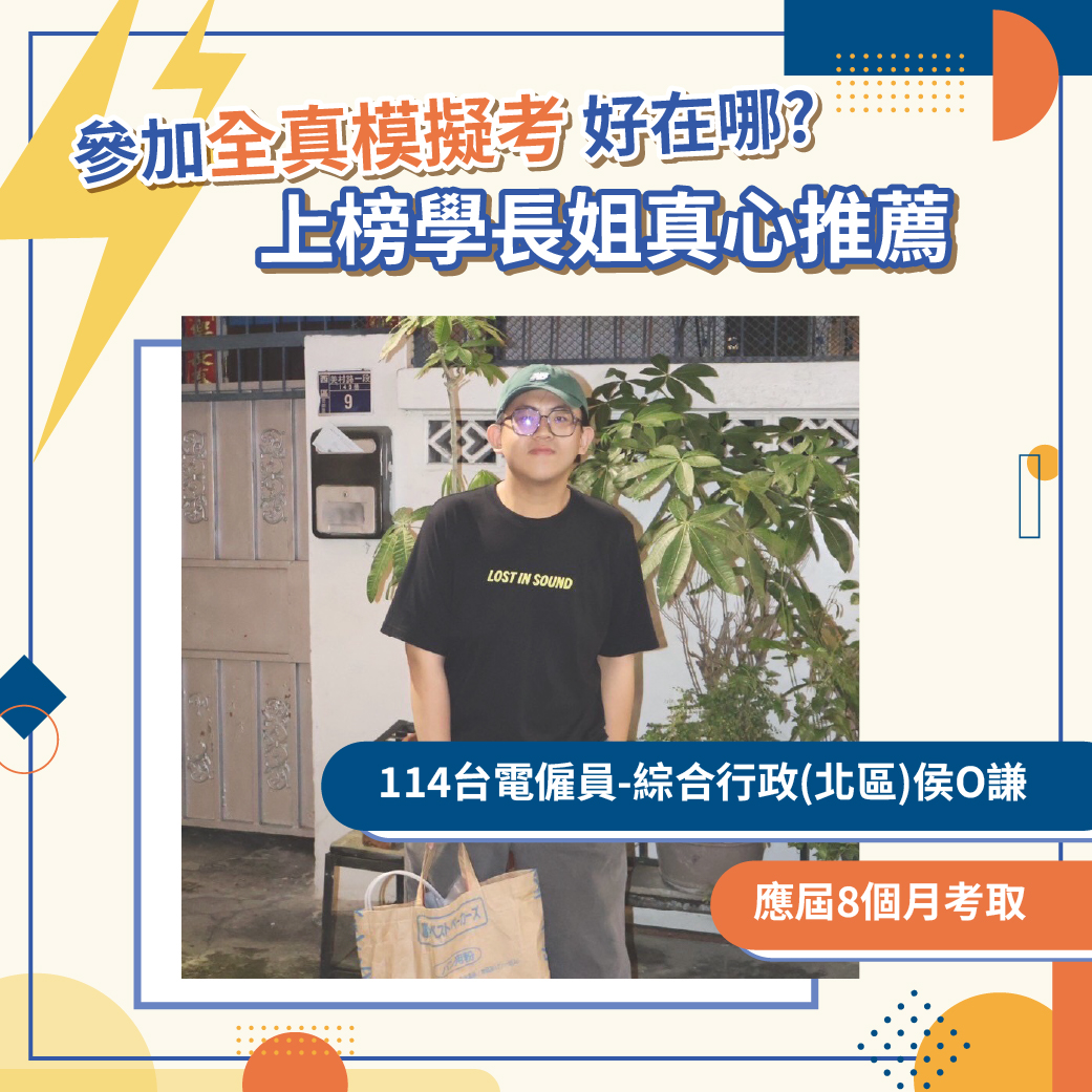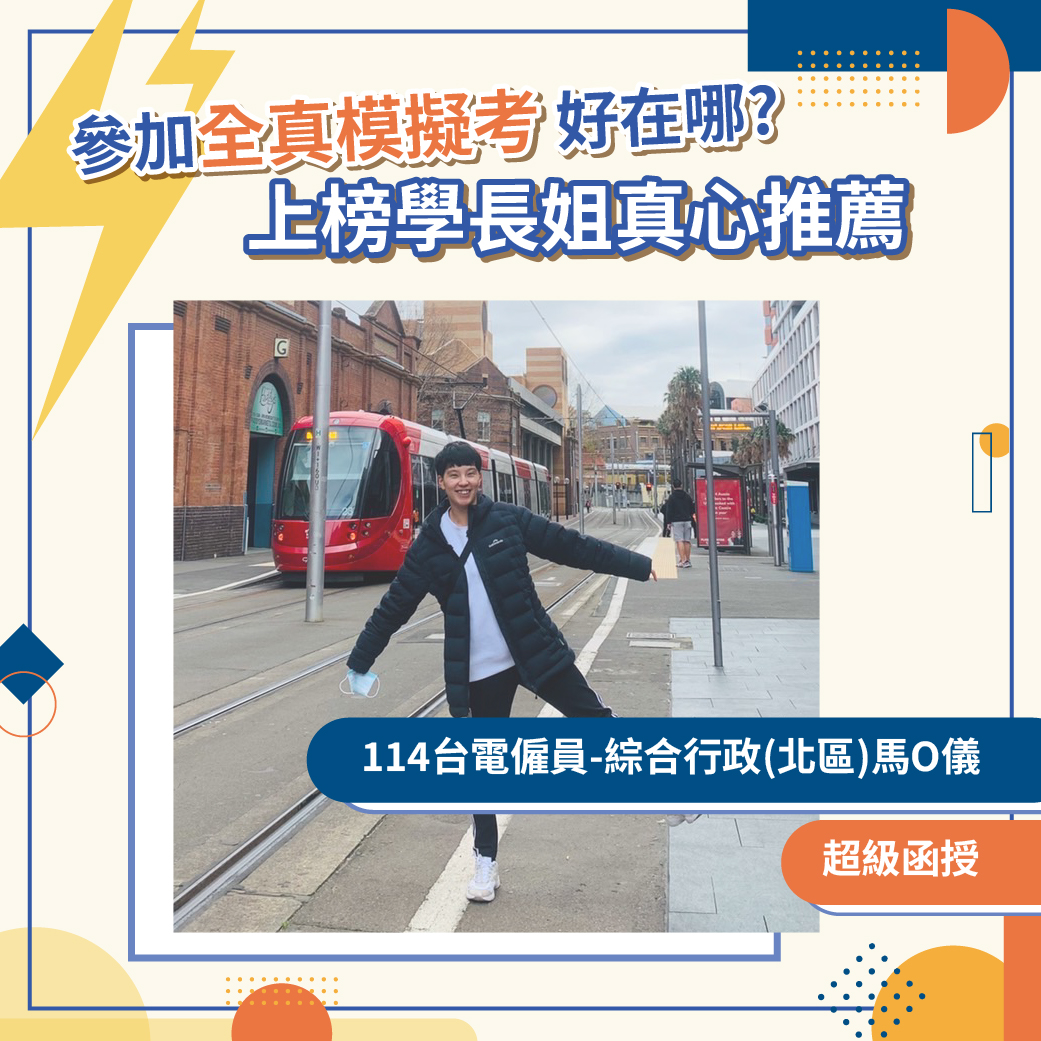 我最喜歡的部分是模擬考,讓我即時瞭解自己有哪些科目較弱,且因距離考試還有一段時間,還有機會去加強弱科,並磨練自己上戰場的反應力與書寫速度。 我今年有參加全真模擬考,覺得幫助非常大。不僅讓我更熟悉正式考試的節奏與流程,也在限時作答的情況下,清楚看見自己在各科的弱點與需要加強的地方。透過這樣的演練,不只幫助我釐清最後衝刺的方向,更培養了臨場應考的穩定度,讓正式上場時能更從容應對。