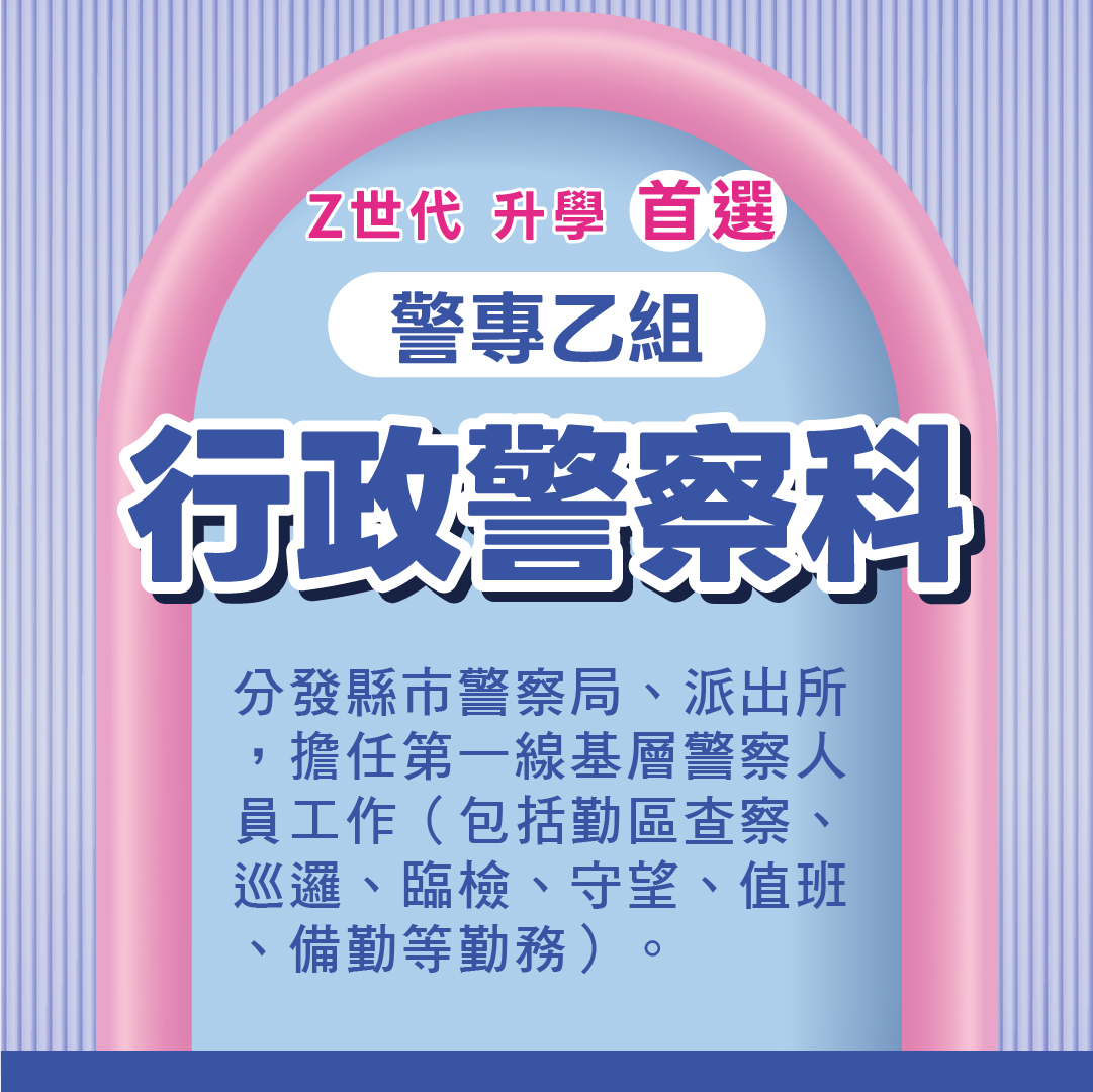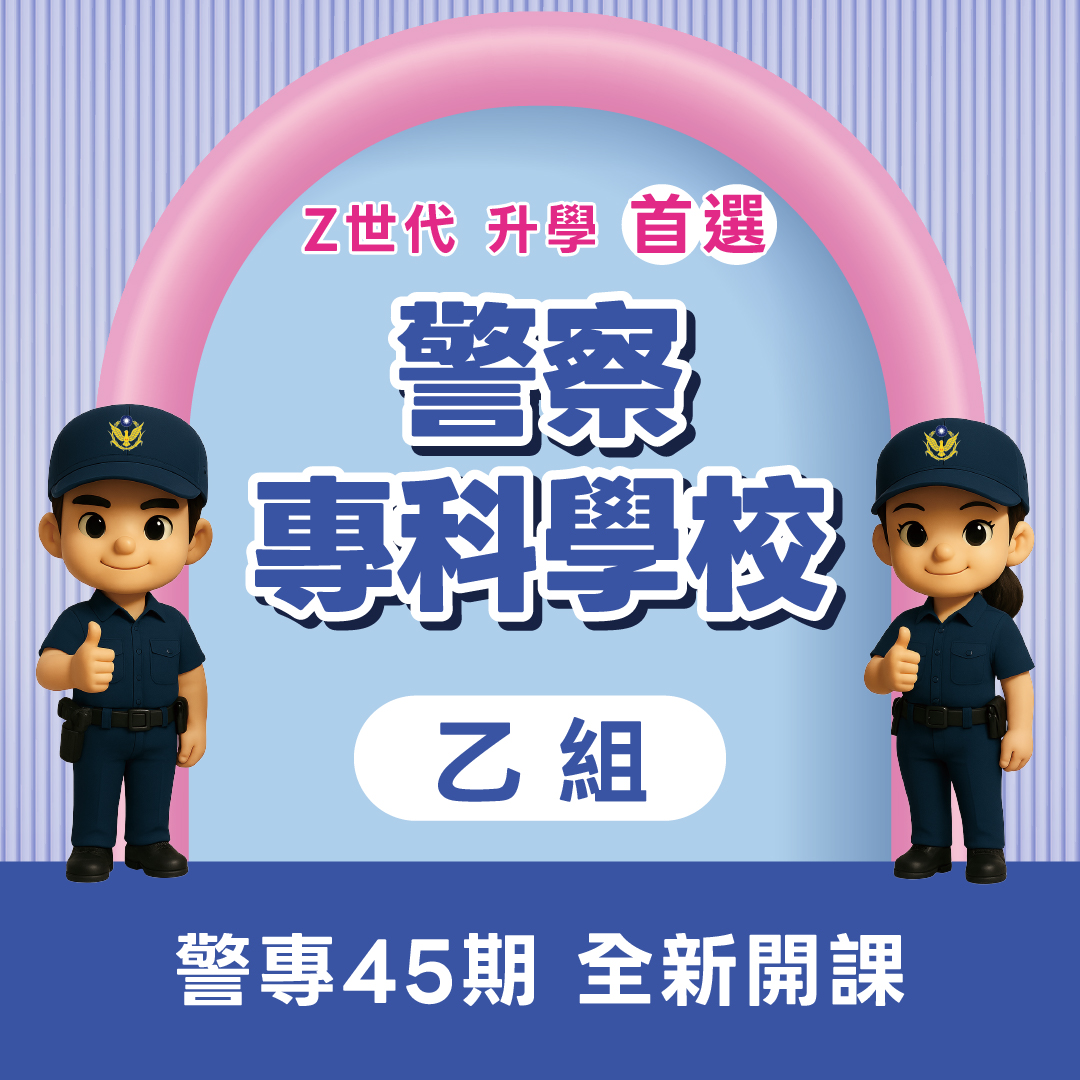乙組 | 行政警察科 | 1.國文 2.英文 3.數學乙 4.歷史與地理 | ||||||