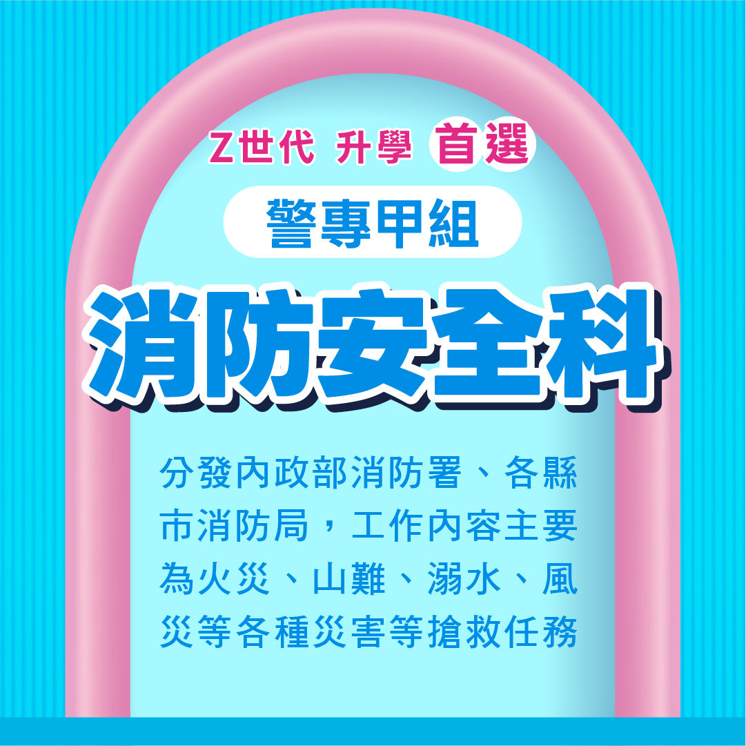 甲組 | 消防安全科 | 1.國文 2.英文 3.數學甲 4.物理與化學 | ||||||