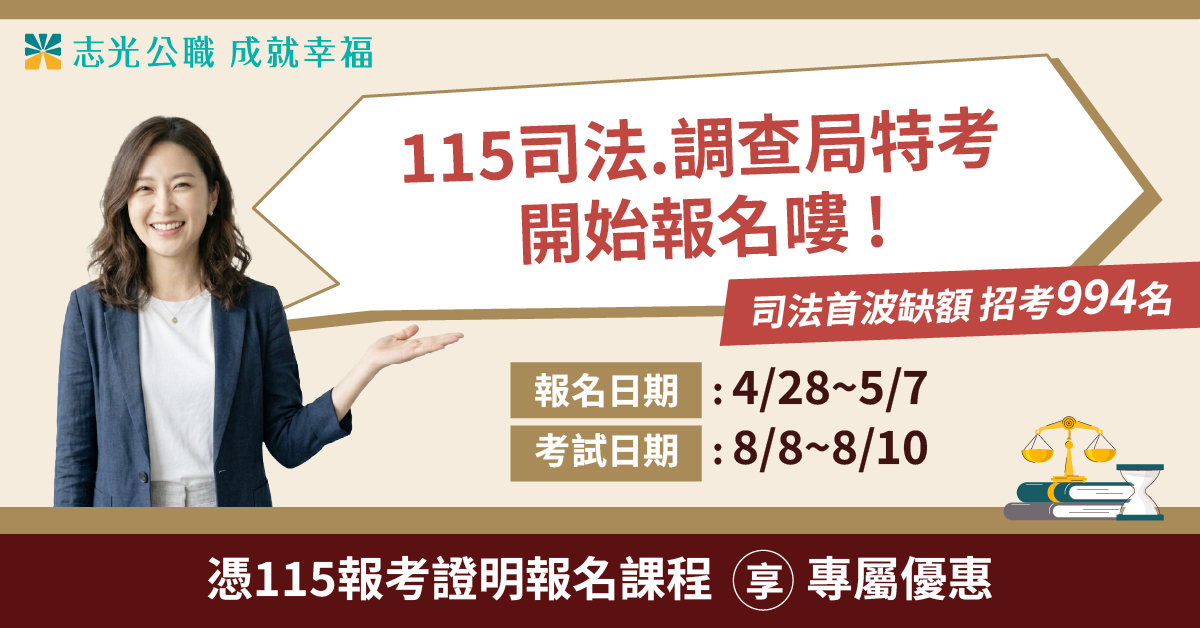 【公職快報】115調查局開始報名|116新班開課早鳥優惠|速洽南投志光