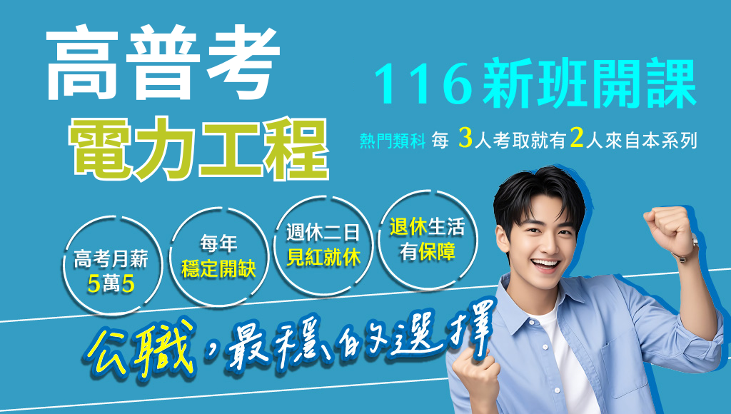 標籤: 高考   普考   地方特考   電力工程   新班開課   工科