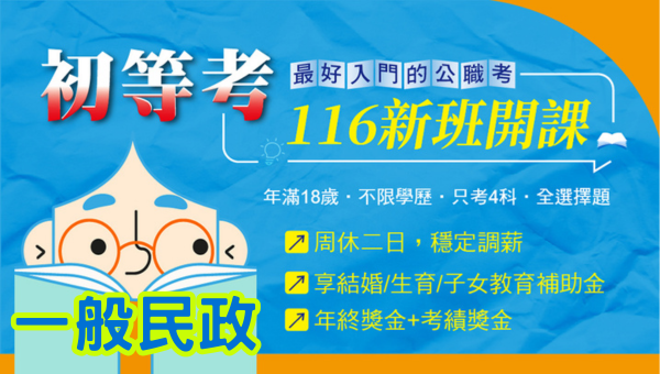 初等考試科目僅考4科, 全部皆為選擇題,考取門檻低,不限學歷,是許多人參加公職考試的入門首選。最新考情速洽:虎尾志光 05-6337155