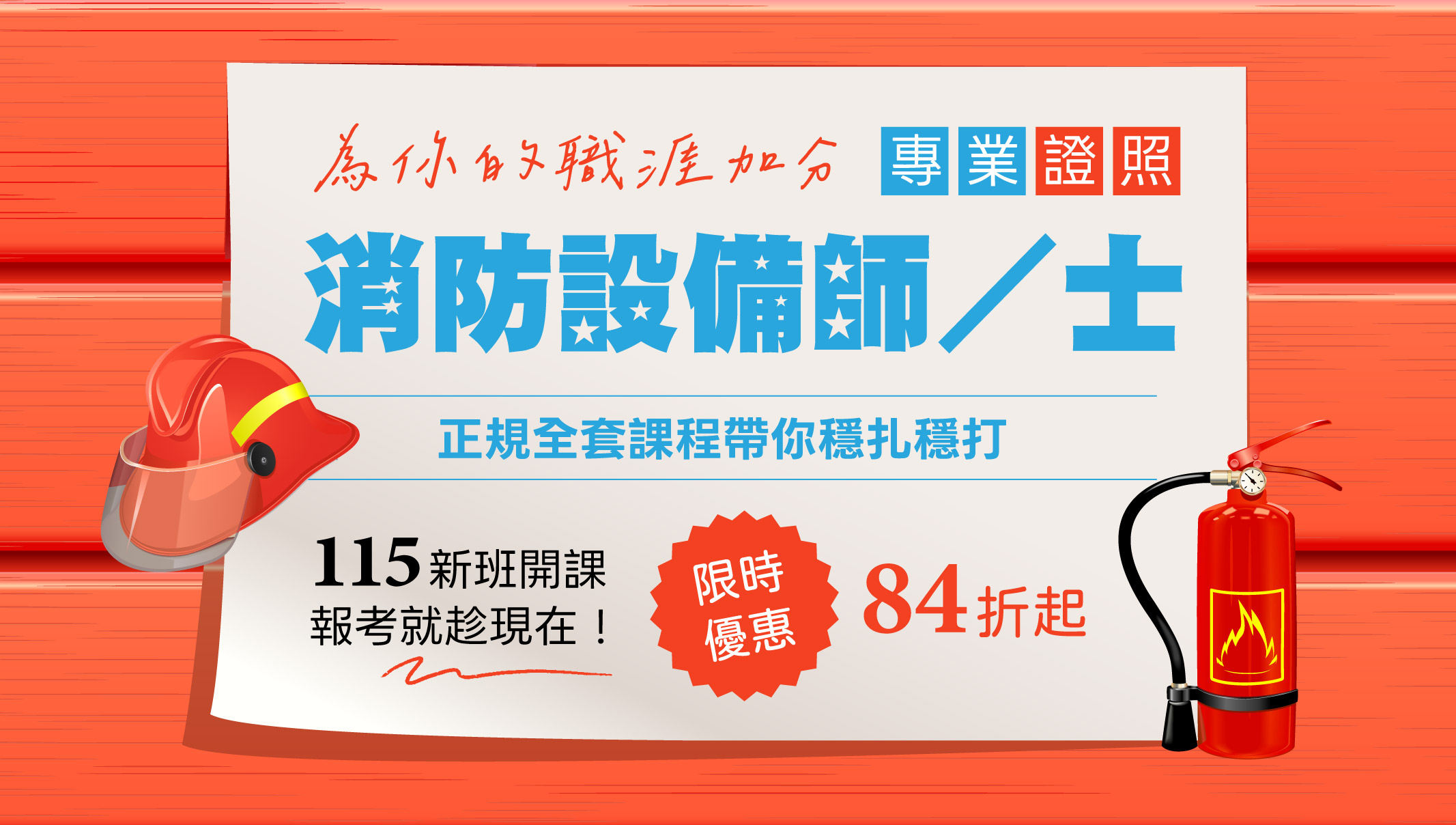 115備考利器 關鍵速效 正規班・題庫班・總複習班 限時優惠 86折起 自由選修・彈性規劃備考進度 憑相關從業人員工作證 敬請洽詢櫃檯或客服專員