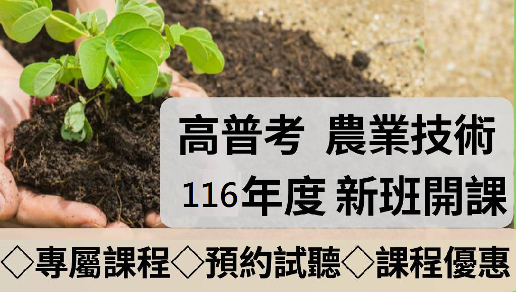 116高普考農業技術 農業改革最前線 新班開課試聽預約中