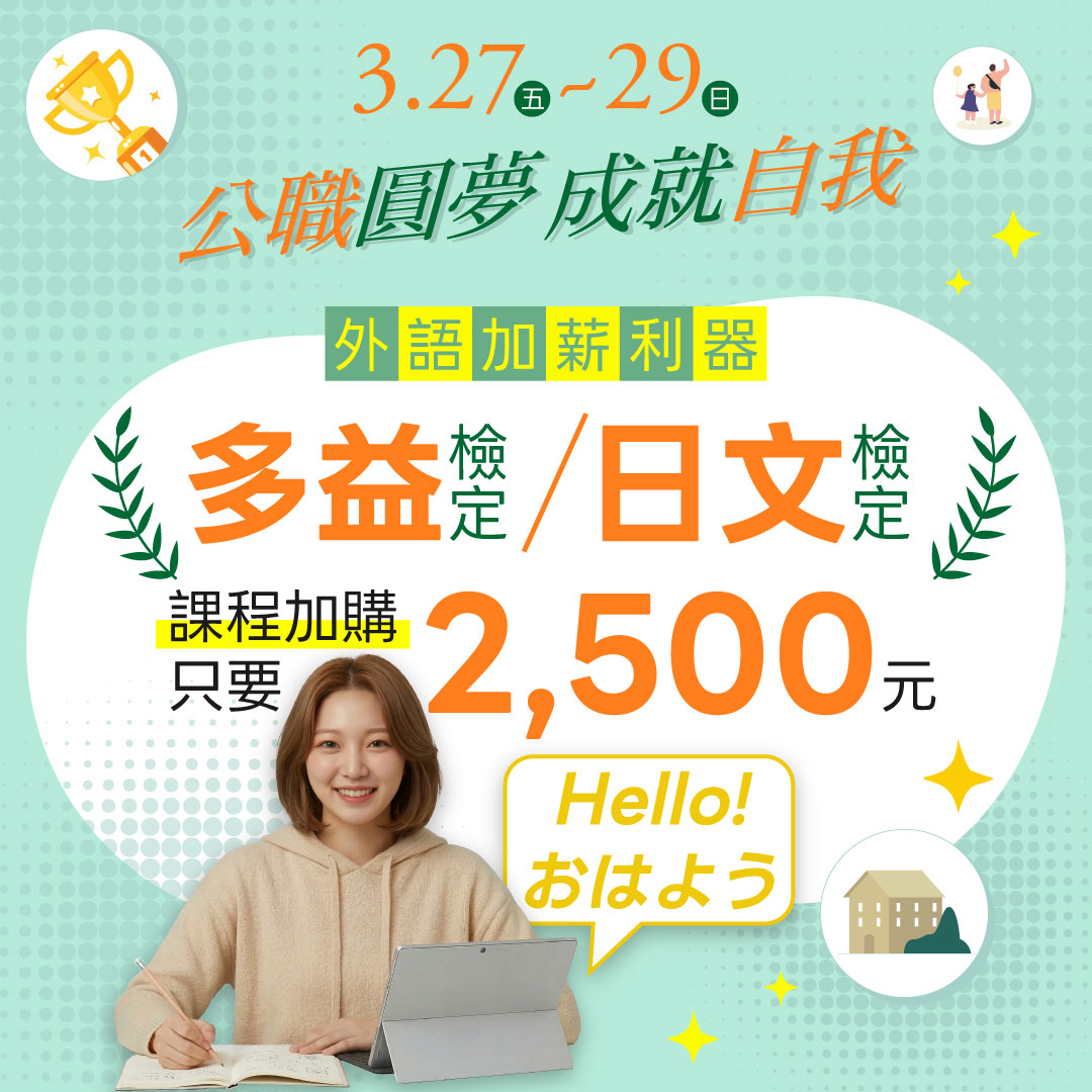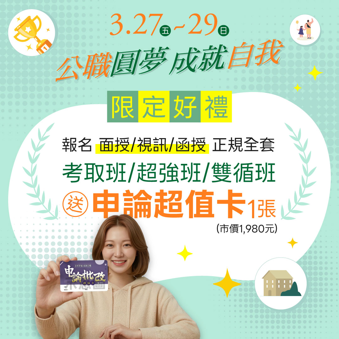 【公職圓夢】3/27~3/29公職國營考試 最高折6,000元