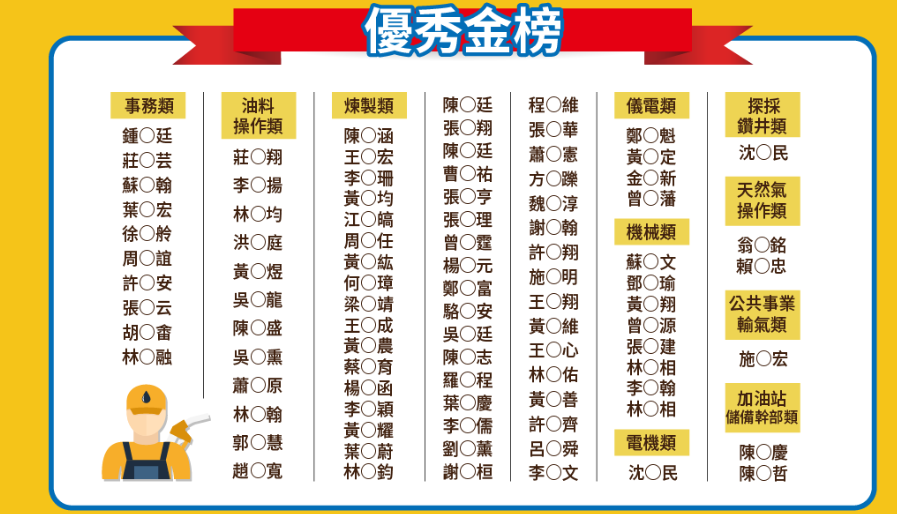 標籤: 中油僱員   煉製類   加油站儲備幹部   事務類
