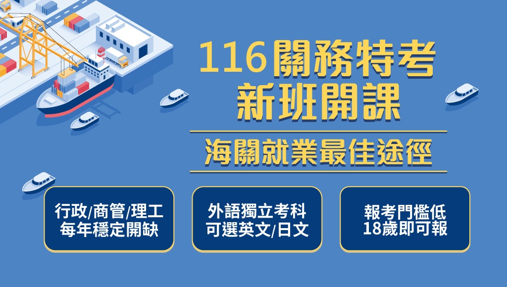 116關務特考-一般行政、新班開課,試聽預約中