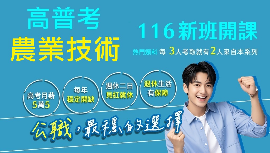 116高普考農業技術、新班開課,試聽預約中